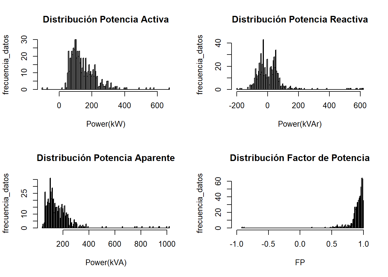 Se observa que el factor de potencia varía entre 0.185 y 1.0, estando por arriba de 0.70 durante el 95% de las mediciones, esto indica variaciones muy amplias del factor de potencia.